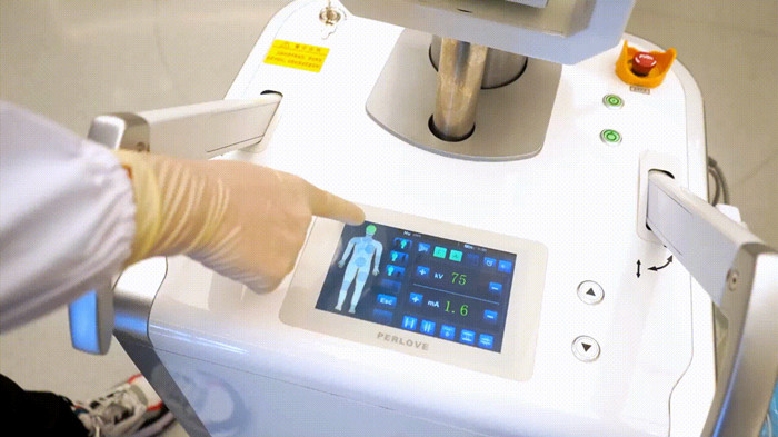 移动式平板C形臂Plus系列主机内嵌大尺寸彩色触控屏,戴上外科手套也能灵敏触控,帮助医生实现近台操作。屏幕搭载人体图像化系统,按键功能一目了然,帮助医生在手术床旁快速调整曝光参数,大大提高了设备的曝光工作效率。